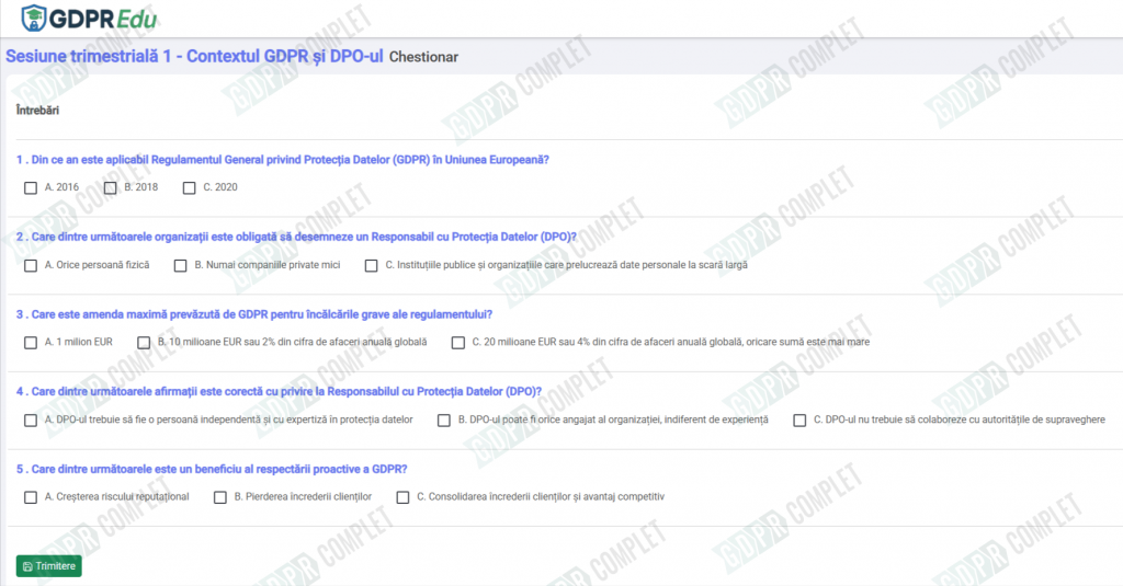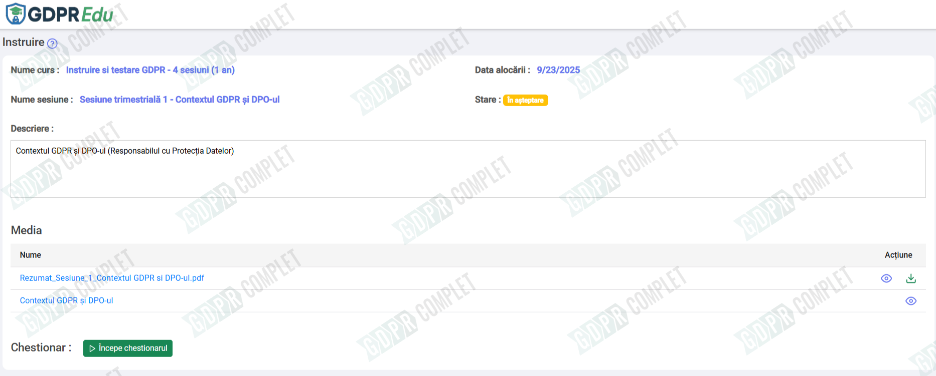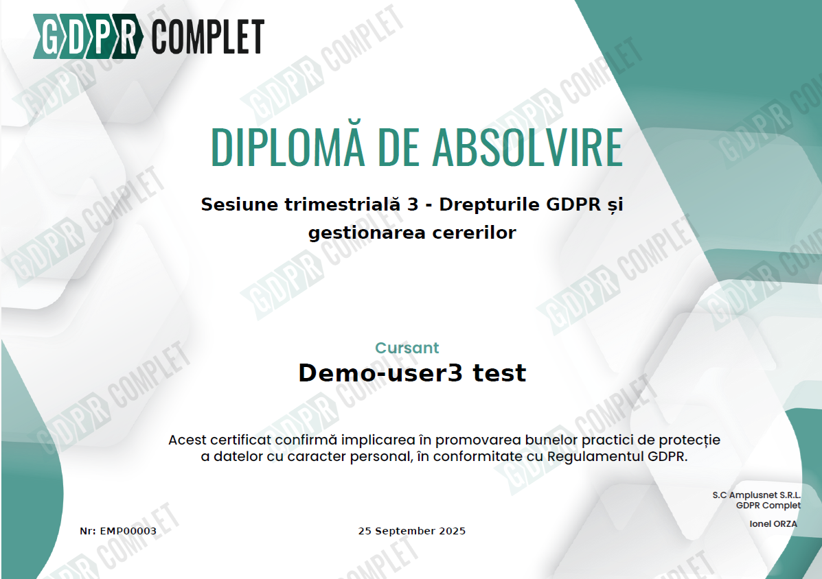 Conformitatea GDPR nu este opțională, iar instruirea periodică a angajaților este o cerință legală. GDPREdu.ro este platforma care simplifică acest proces, oferind companiilor un sistem complet de cursuri online, testare automată și rapoarte centralizate, totul într-o interfață modernă și intuitivă.